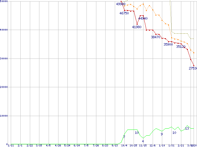 | ST31000340NS (1TB,32MB)の価格推移 | | | (2007年1月11日~2008年3月20日) |