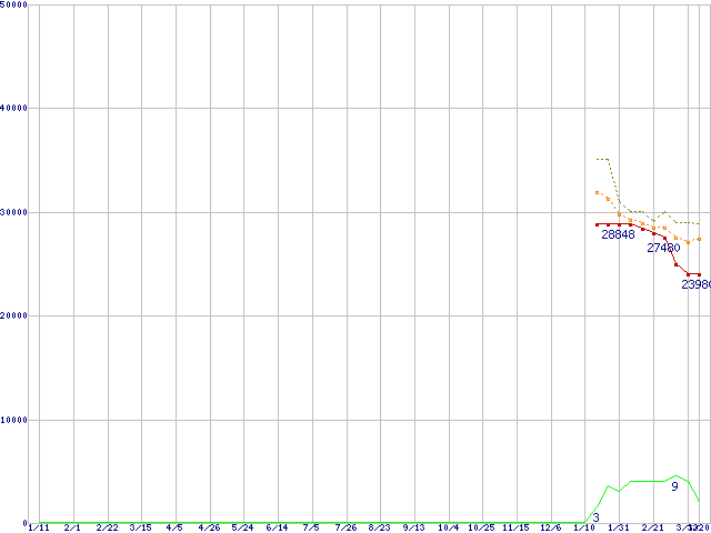 | HD103UJ (1TB,32MB)の価格推移 | | | (2007年1月11日~2008年3月20日) |