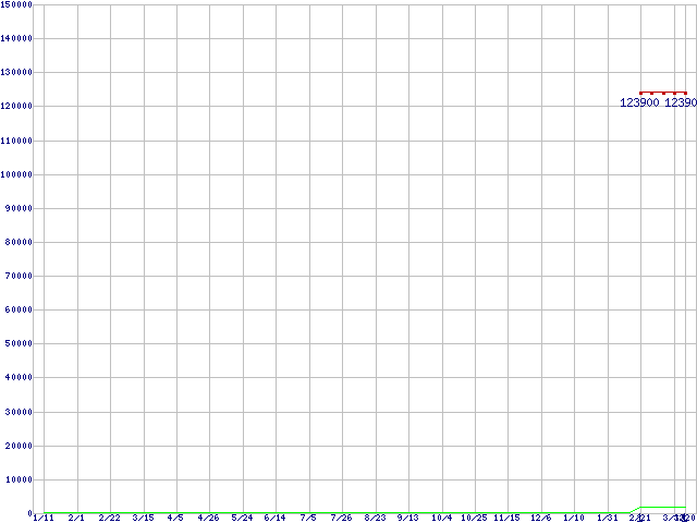 ※このグラフは過去のデータも税率5%相当に調整した税込み相当額のグラフです。 税率変更や、総額表示方式導入(2004年4月)の影響は除いています。 | | | ●凡例 | 最安値 (点線部は販売店未確認 または未調査) | 平均値 | 最高値 | ショップ数 |
