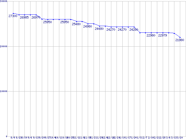 WD Raptor (10000rpm,SATA 1.5Gb/s,16MB,TLER)の最安値推移