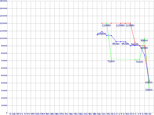 メモリ主要製品(最安値1万円以上)の最安値推移