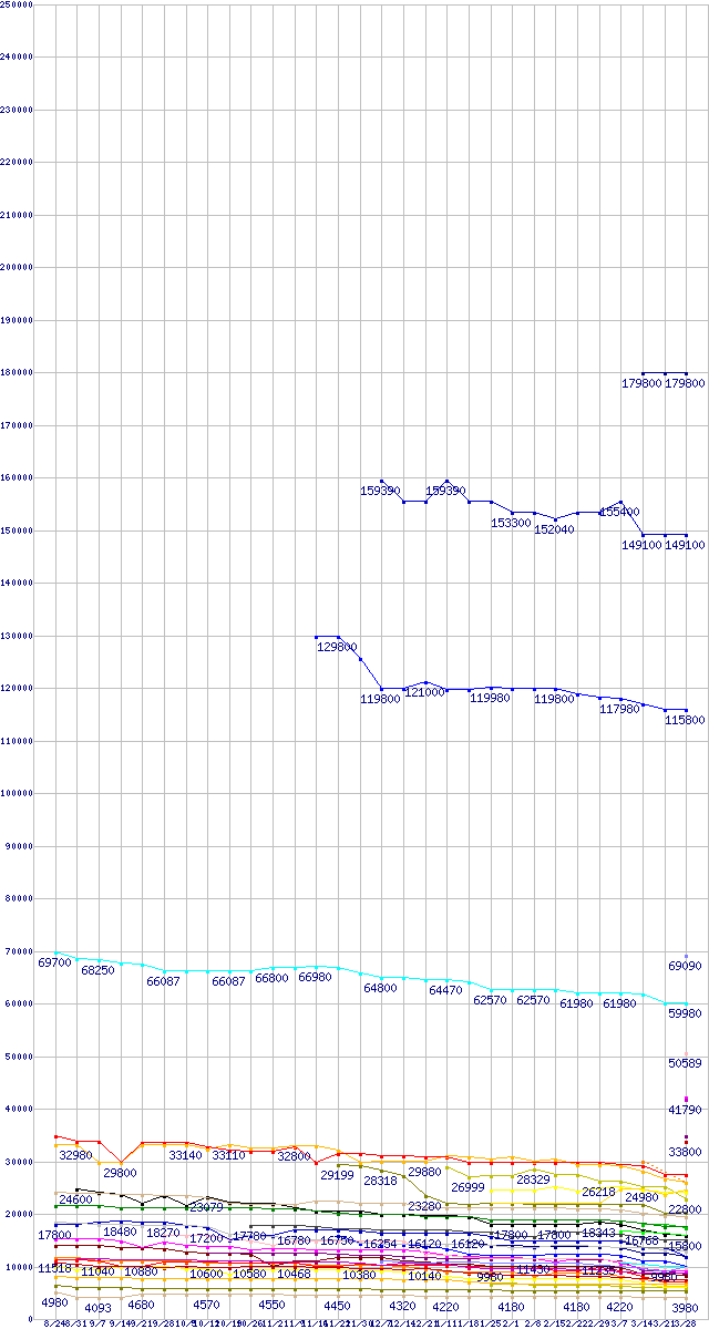 | CPU主要製品の最安値推移 | | | (2007年8月24日~2008年3月28日) |