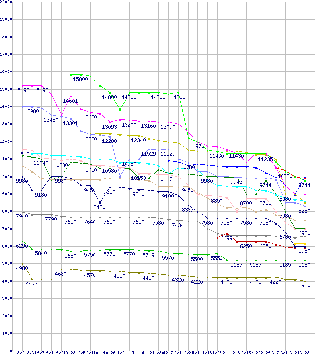 ※製品名をクリックすると個別のグラフを表示します ※点線部は販売店が確認できなかった、または調査データがないことを示します |