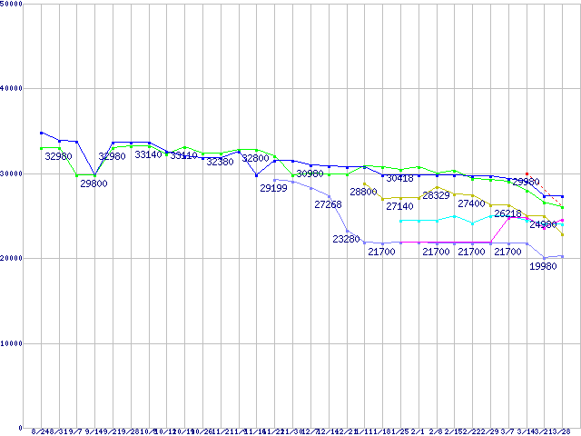 CPU主要製品(最安値2万円~3万円未満)の最安値推移