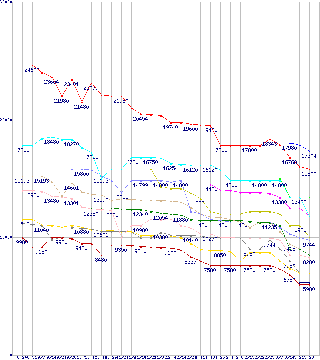 ※製品名をクリックすると個別のグラフを表示します ※点線部は販売店が確認できなかった、または調査データがないことを示します |
