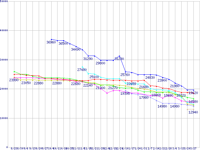 HDD 600~750GB未満の最安値推移