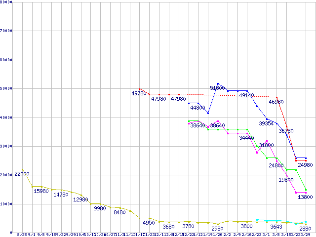 メモリ主要製品の最安値推移