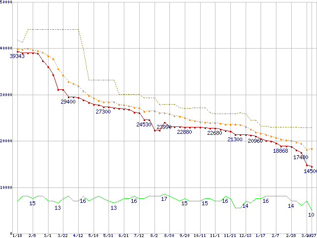 | ST3750640AS (750GB,16MB)の価格推移 | | | (2007年1月18日~2008年3月27日) |