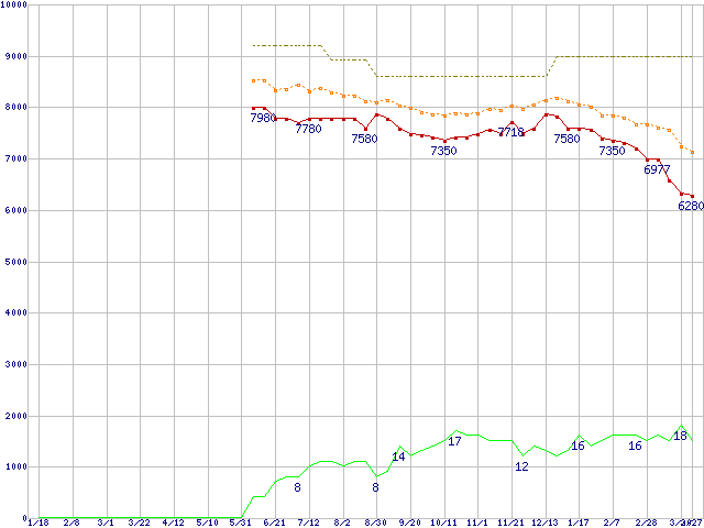 | ST3250410AS (250GB,16MB)の価格推移 | | | (2007年1月18日~2008年3月27日) |