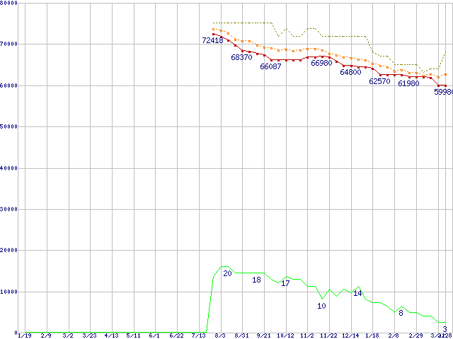 | Core 2 Quad Q6700 (2.66GHz,L2 4MB×2)の価格推移 | | | (2007年1月19日~2008年3月28日) |