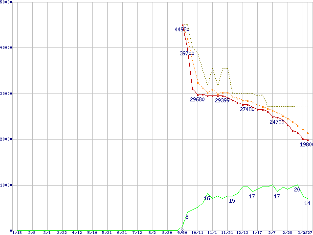| WD10EACS (1TB,16MB)の価格推移 | | | (2007年1月18日~2008年3月27日) |