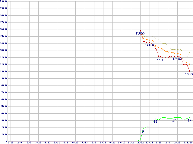 | Athlon 64 X2 5200+ (2.7GHz,L2 512KB×2,TDP65W)の価格推移 | | | (2007年1月19日~2008年3月28日) |