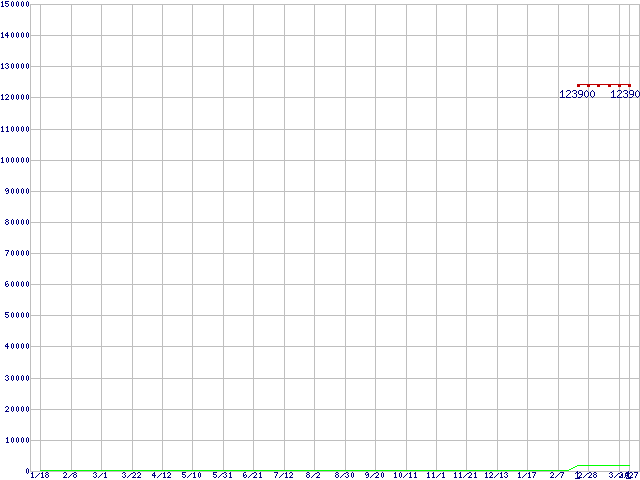 ※このグラフは過去のデータも税率5%相当に調整した税込み相当額のグラフです。 税率変更や、総額表示方式導入(2004年4月)の影響は除いています。 | | | ●凡例 | 最安値 (点線部は販売店未確認 または未調査) | 平均値 | 最高値 | ショップ数 |