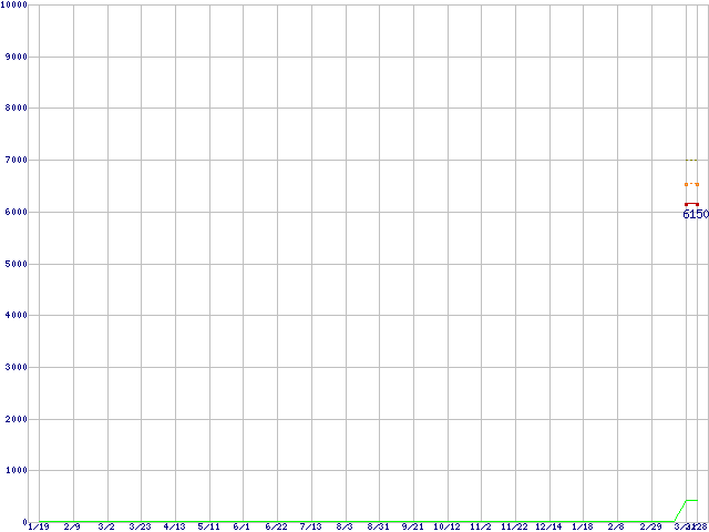 ※このグラフは過去のデータも税率5%相当に調整した税込み相当額のグラフです。 税率変更や、総額表示方式導入(2004年4月)の影響は除いています。 | | | ●凡例 | 最安値 (点線部は販売店未確認 または未調査) | 平均値 | 最高値 | ショップ数 |