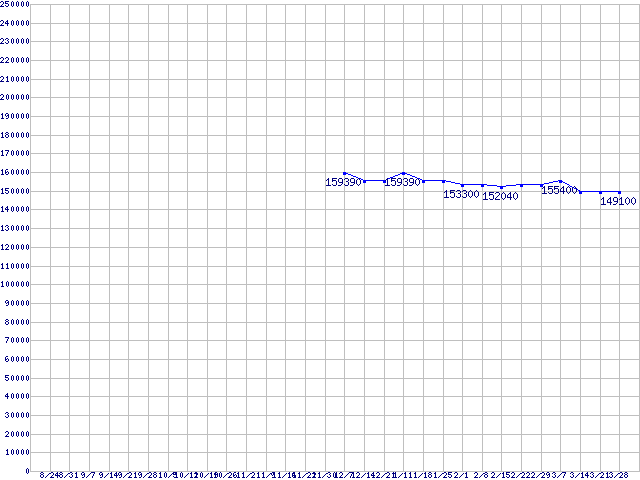 | LGA771(FSB 1333MHz,Quad Core,L2 6MB×2,TDP 120W)の最安値推移 | | | (2007年8月24日~2008年3月28日) |
