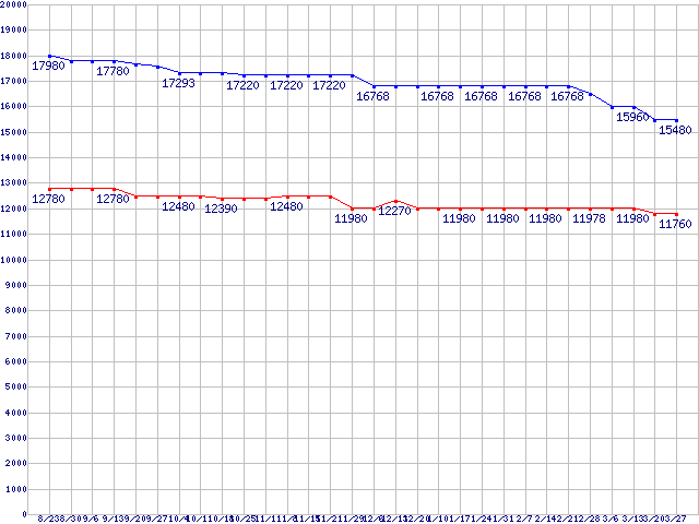 WD Raptor (10000rpm,SATA 1.5Gb/s,16MB,NCQ)の最安値推移