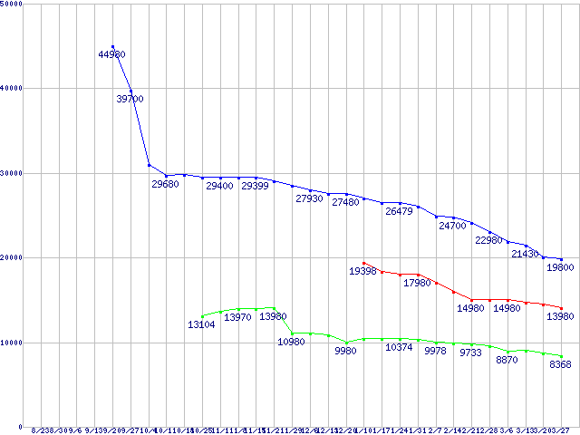 WD Raptor (10000rpm,SATA 1.5Gb/s,16MB,NCQ)の最安値推移