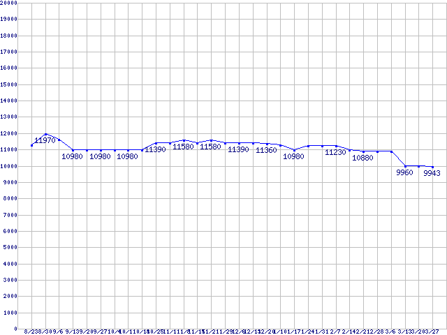 WD Caviar SE (7200rpm,SATA 3Gb/s,8MB)の最安値推移