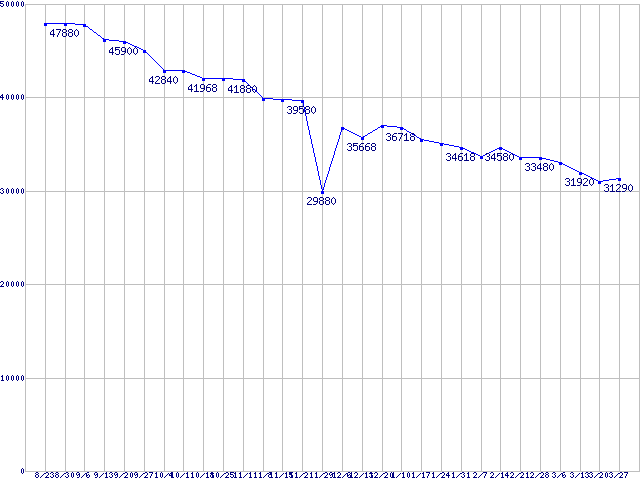 Deskstar 7K1000 (7200rpm,SATA 3Gb/s)の最安値推移