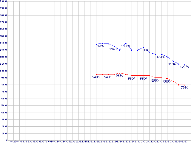 Deskstar 7K160 (7200rpm,SATA 3Gb/s)の最安値推移