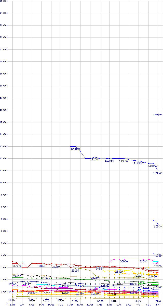 | CPU主要製品の最安値推移 | | | (2007年8月24日~2008年4月4日) |