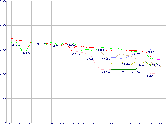 ※製品名をクリックすると個別のグラフを表示します ※点線部は販売店が確認できなかった、または調査データがないことを示します |