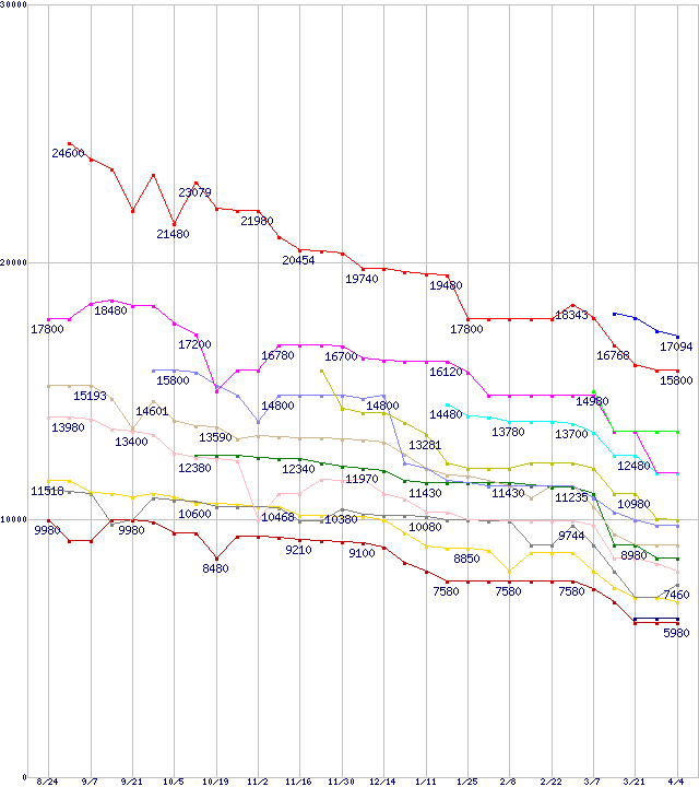 ※製品名をクリックすると個別のグラフを表示します ※点線部は販売店が確認できなかった、または調査データがないことを示します |
