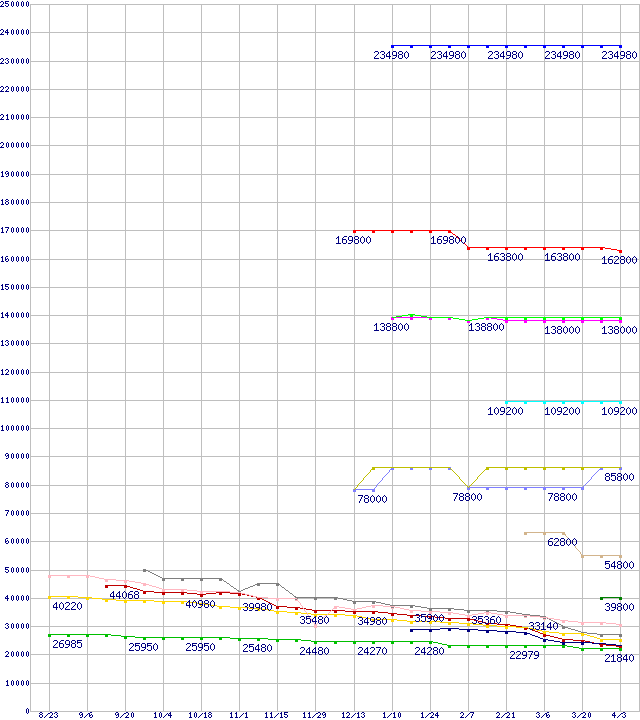 HDD/SSD主要製品(最安値2万円以上)の最安値推移