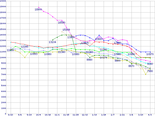 ※点線部は販売店が確認できなかった、または調査データがないことを示します