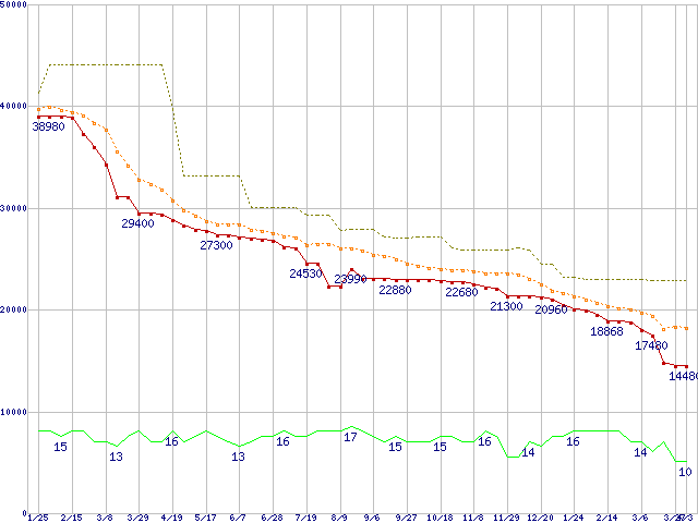| ST3750640AS (750GB,16MB)の価格推移 | | | (2007年1月25日~2008年4月3日) |