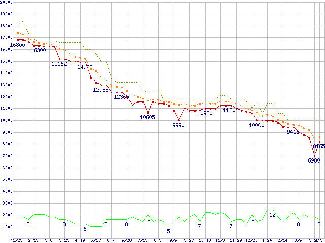 | HD501LJ (500GB,16MB)の価格推移 | | | (2007年1月25日~2008年4月3日) |