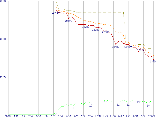 | WD7500AAKS (750GB)の価格推移 | | | (2007年1月25日~2008年4月3日) |