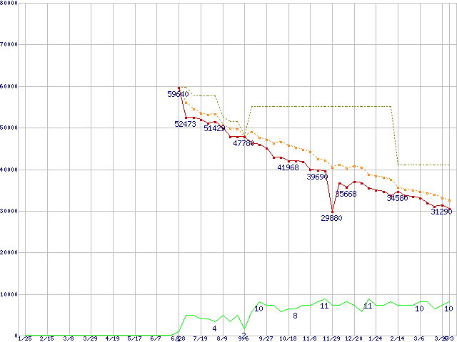 | HUA721010KLA330 (1TB,32MB)の価格推移 | | | (2007年1月25日~2008年4月3日) |