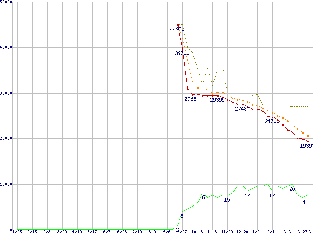 | WD10EACS (1TB,16MB)の価格推移 | | | (2007年1月25日~2008年4月3日) |