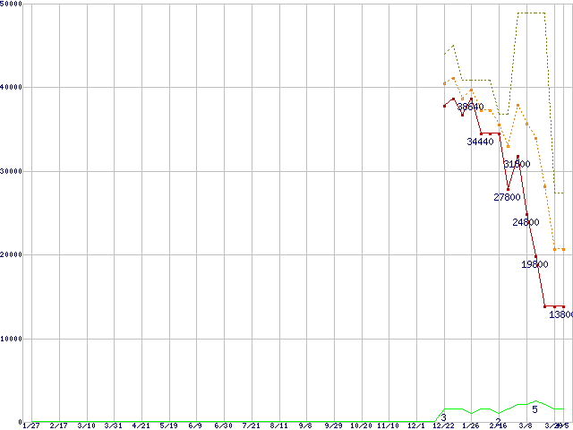 PC3-8500(DDR3-1066) DDR3 SDRAM DIMMの最安値推移
