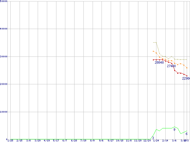 | HD103UJ (1TB,32MB)の価格推移 | | | (2007年1月25日~2008年4月3日) |