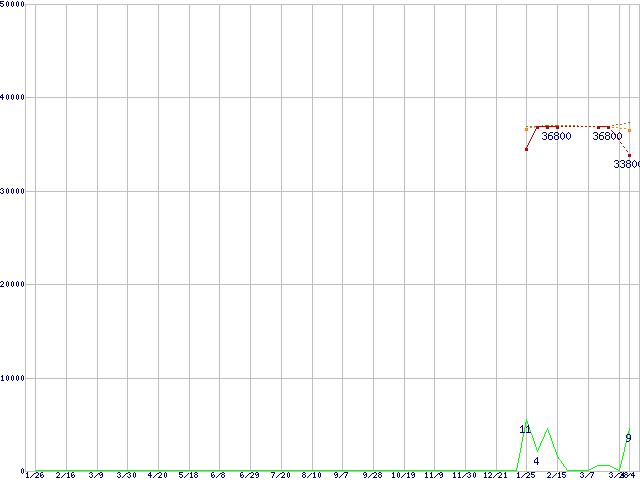| Core 2 Duo E8500 (3.16GHz,L2 6MB)の価格推移 | | | (2007年1月26日~2008年4月4日) |