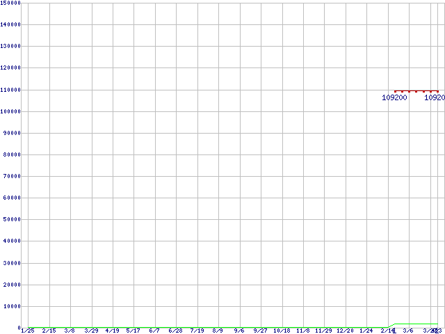 ※このグラフは過去のデータも税率5%相当に調整した税込み相当額のグラフです。 税率変更や、総額表示方式導入(2004年4月)の影響は除いています。 | | | ●凡例 | 最安値 (点線部は販売店未確認 または未調査) | 平均値 | 最高値 | ショップ数 |