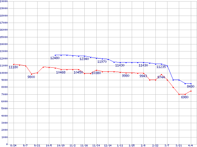 Socket AM2 (HyperTransport,Dual Core)の最安値推移