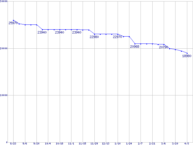WD Raptor (10000rpm,SATA 1.5Gb/s,16MB,NCQ)の最安値推移