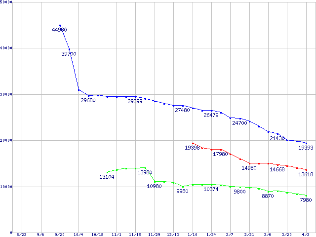 WD Raptor (10000rpm,SATA 1.5Gb/s,16MB,NCQ)の最安値推移