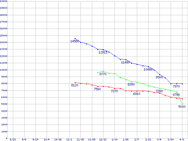 Deskstar P7K500 (7200rpm,SATA 3Gb/s)の最安値推移