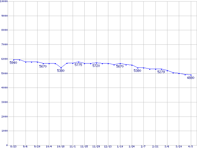 Deskstar P7K500 (7200rpm,SATA 3Gb/s)の最安値推移