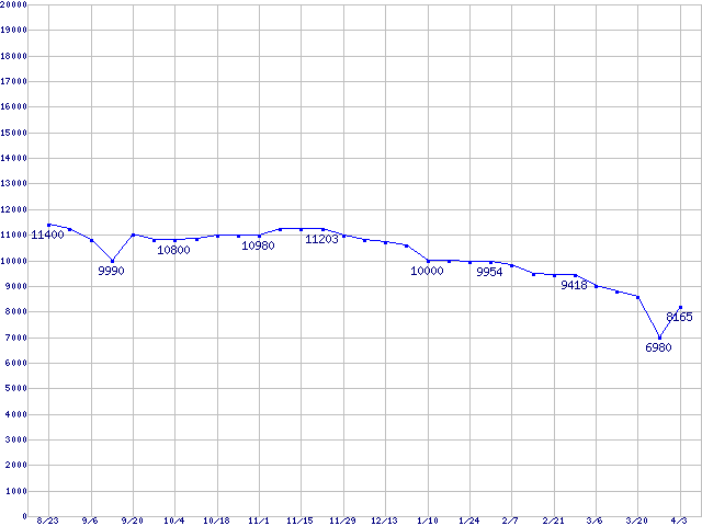Spinpoint F1 (7200rpm,SATA 3Gb/s)の最安値推移