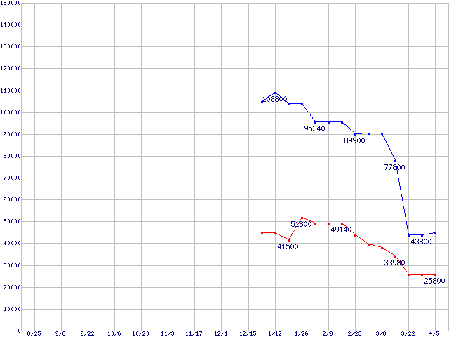 PC2-6400(DDR2-800) DDR2 SDRAM DIMMの最安値推移