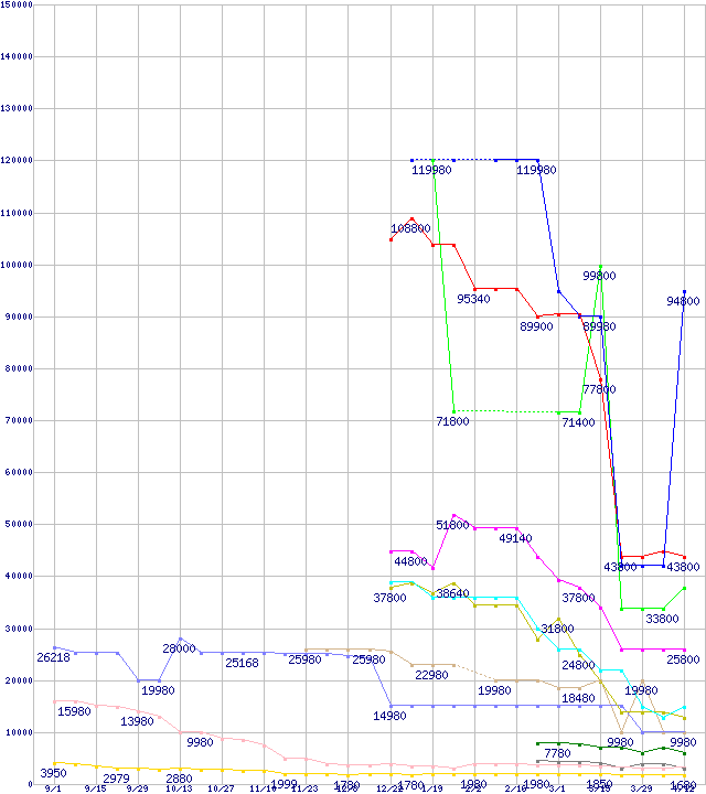 メモリ主要製品の最安値推移