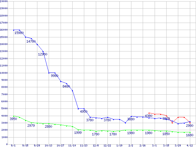 1GBモジュールの最安値推移