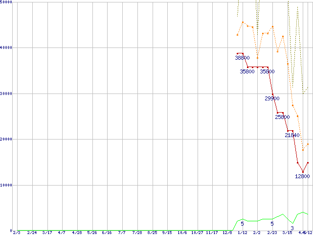 PC3-10600(DDR3-1333) DDR3 SDRAM DIMMの最安値推移