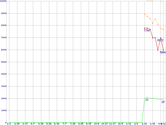 | PC2-6400 2GB×2枚組みセットの価格推移 | | | (2007年2月3日~2008年4月12日) |