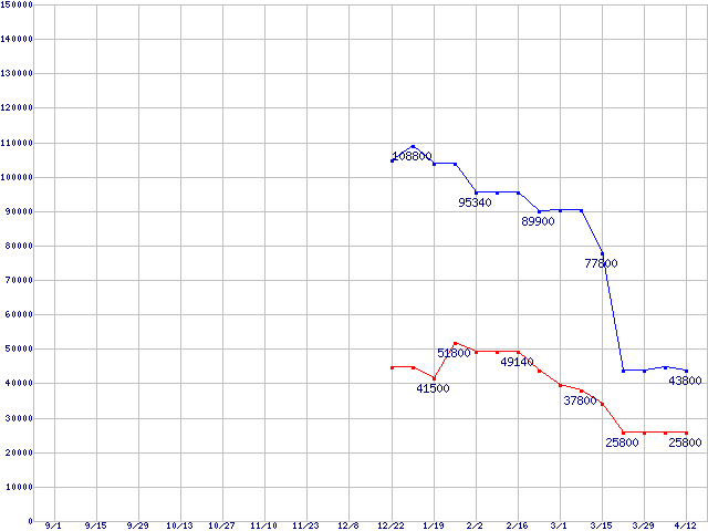 PC2-6400(DDR2-800) DDR2 SDRAM DIMMの最安値推移